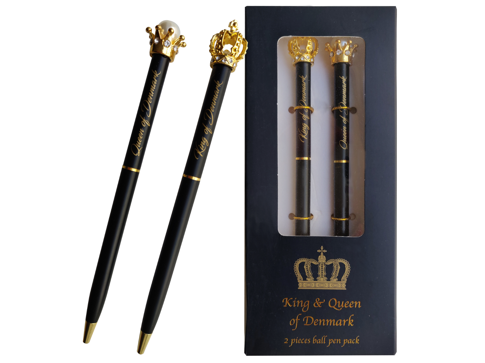 2 Styk Kuglepenne King And Queen Of Denmark I Æske