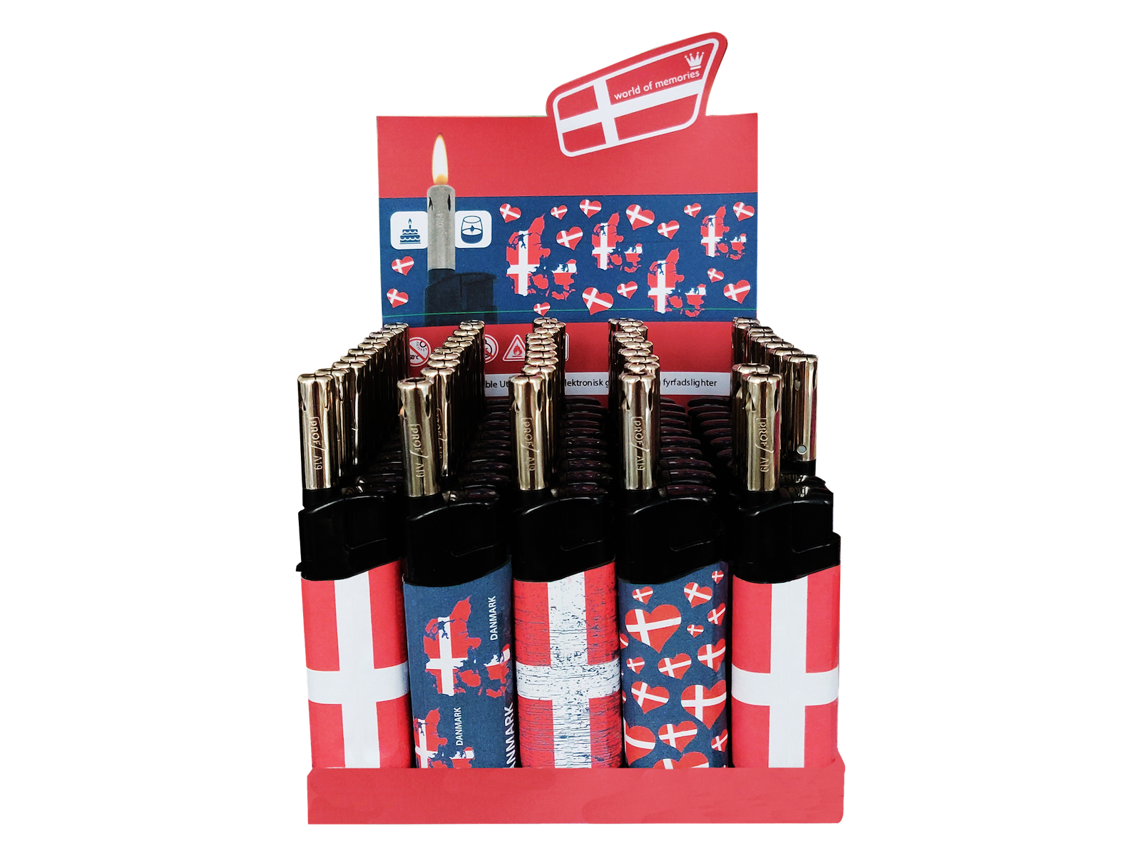 Lightere I Display, Flag - 50 I Æske