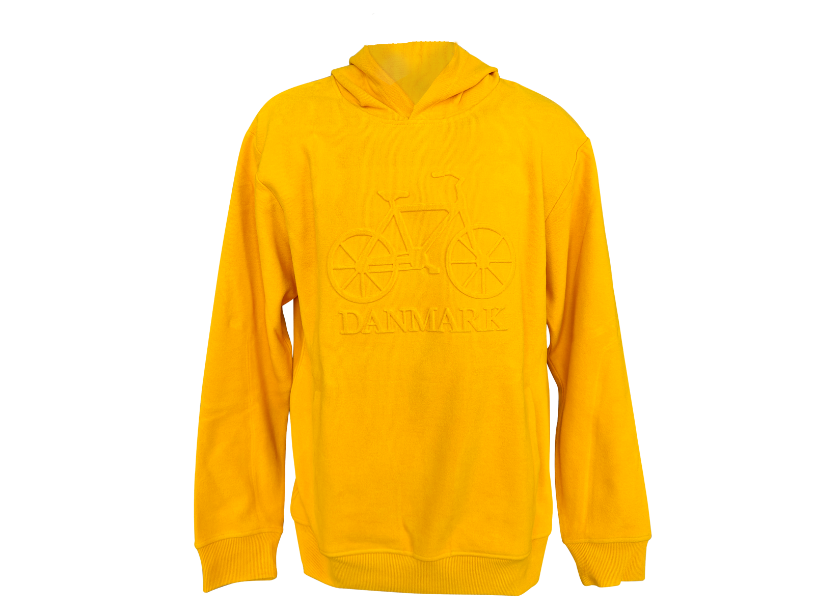 Gul hoodie med præget cykelmotiv i GRS-certificeret bomuld. Et farverigt og salgsstærkt valg til detail og turisme med fokus på dansk kultur. Læs mere under ”Information”.