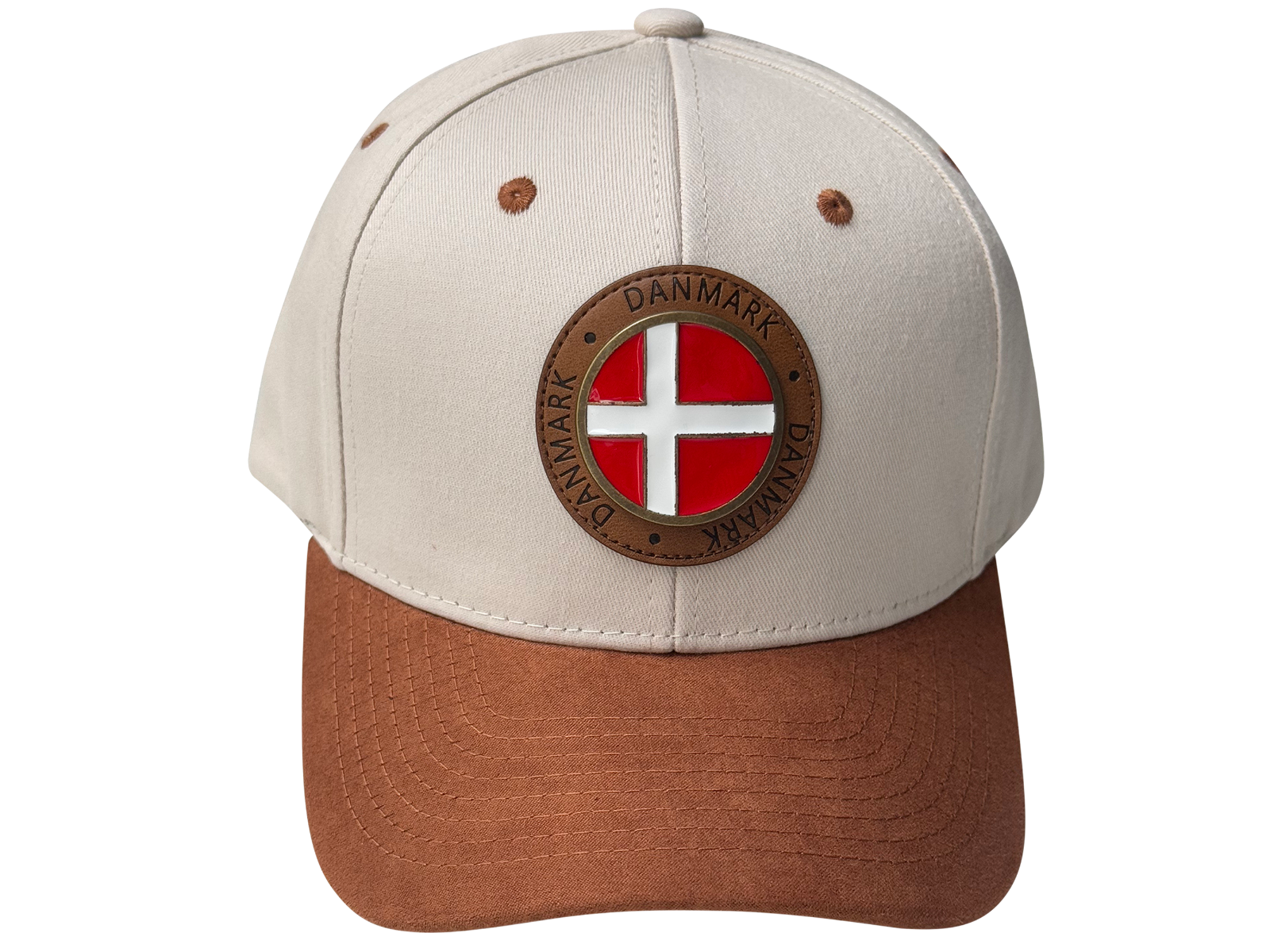 Kasket, Beige m/Rundt Metal DK Flag