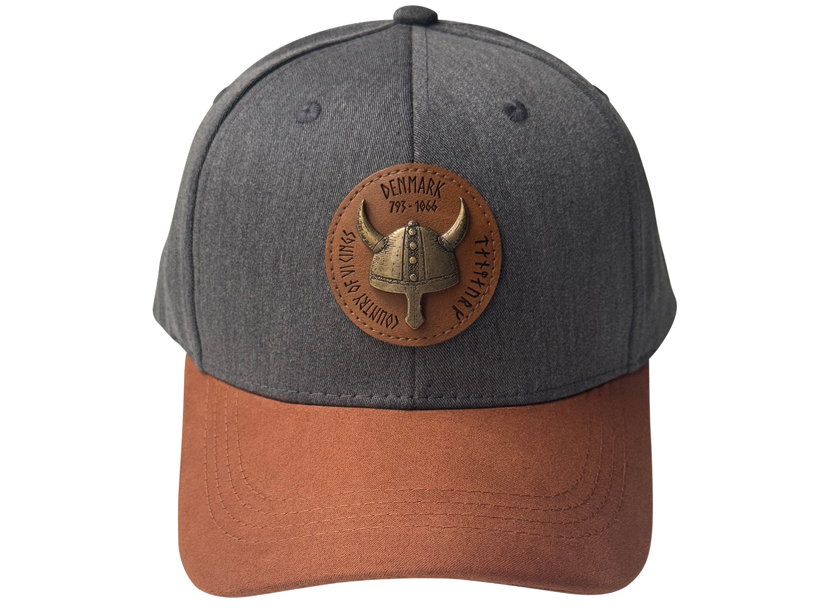 Kasket Denim blå med rundt Læderpatch og metal Vikinghjelm