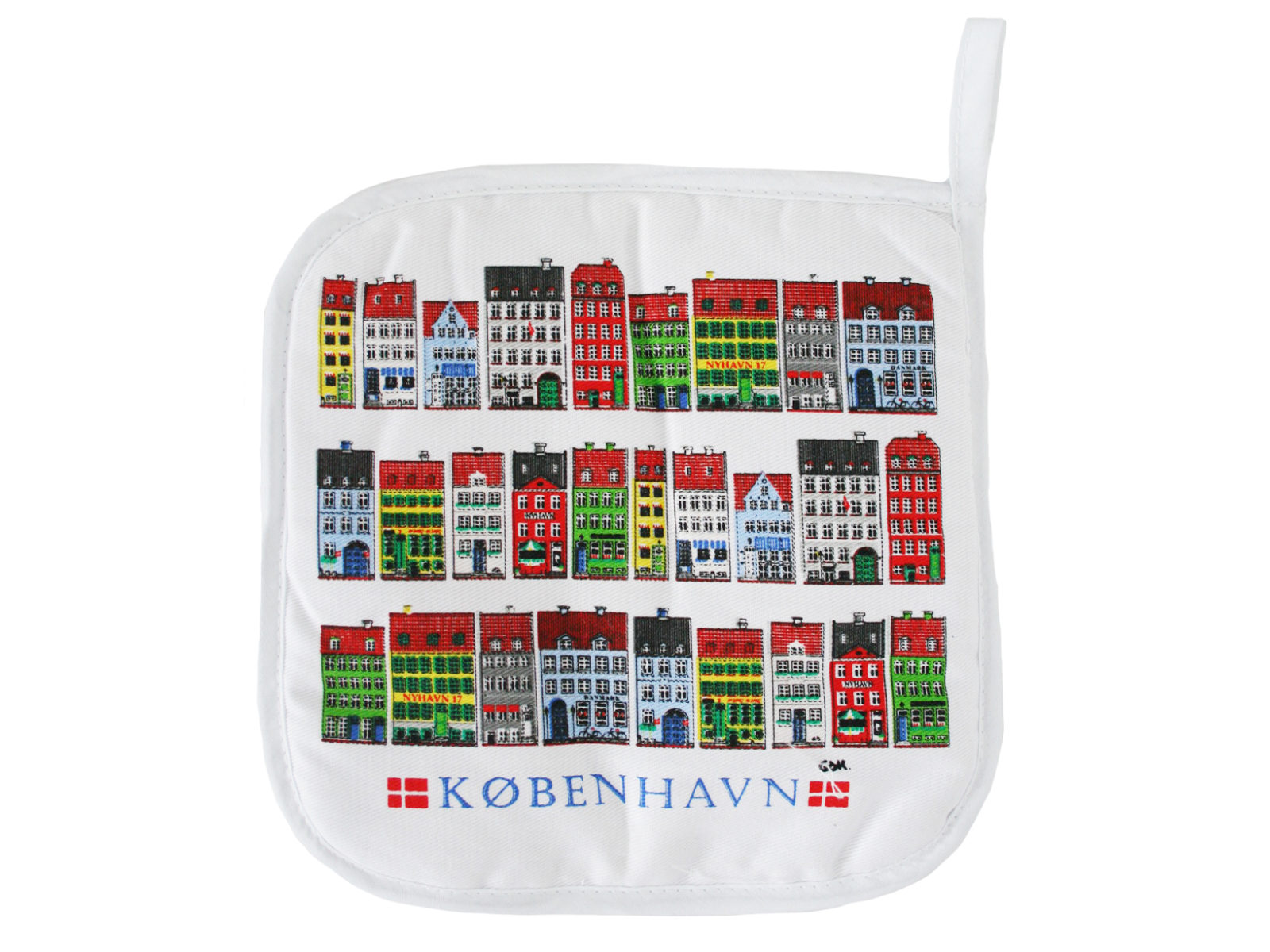 Grydelap med farverigt Nyhavn-motiv i GRS-certificeret materiale. Et salgsstærkt valg til butikker med fokus på dansk kultur og bæredygtige tiltag. Læs mere under ”Information”.