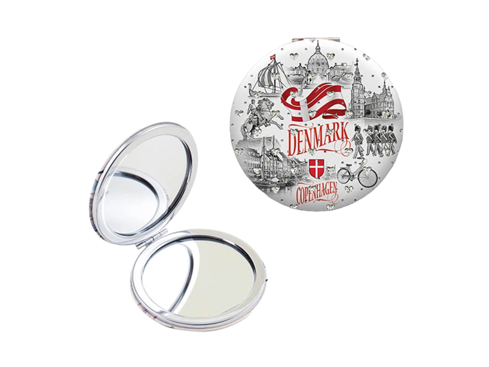 Spejl, rundt m/Reinstone Black & White