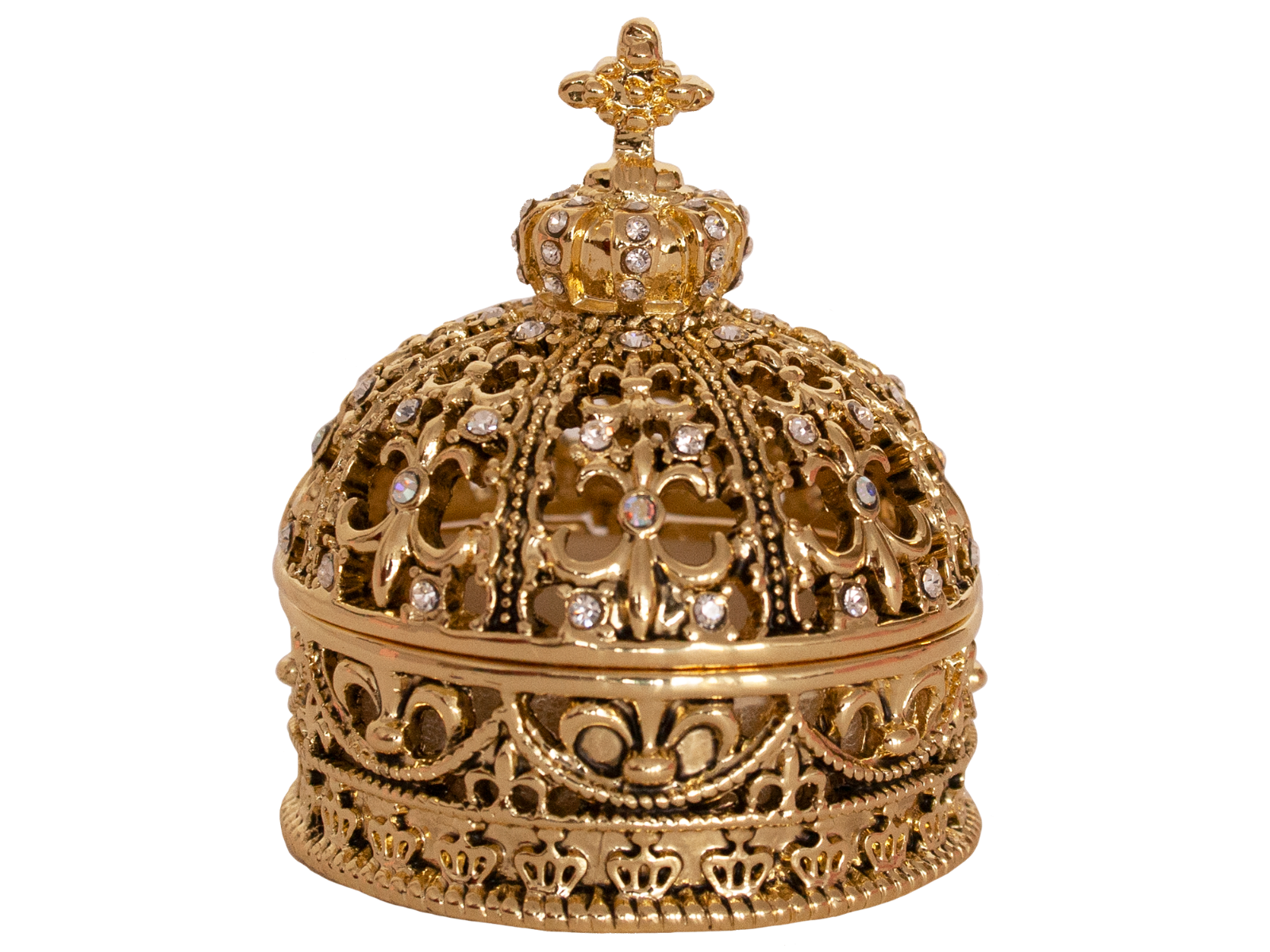 Smykkeskrin Krone Med Æske Hvide Diamanter 5,4 cm