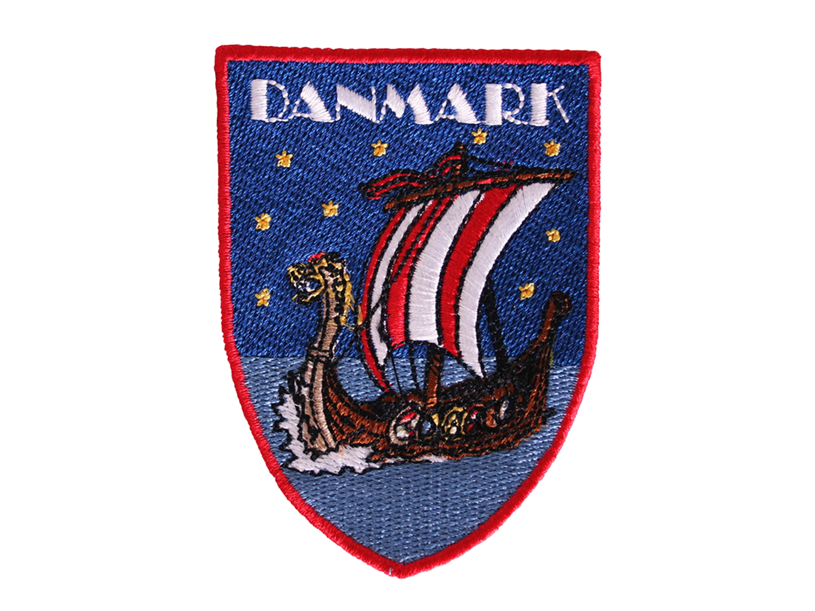 Broderet stofmærke med stryge-på bagside. Stofmærket er 8 cm højt og 6 cm bredt.